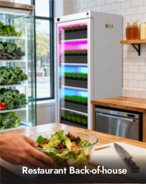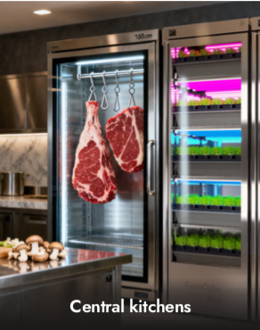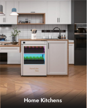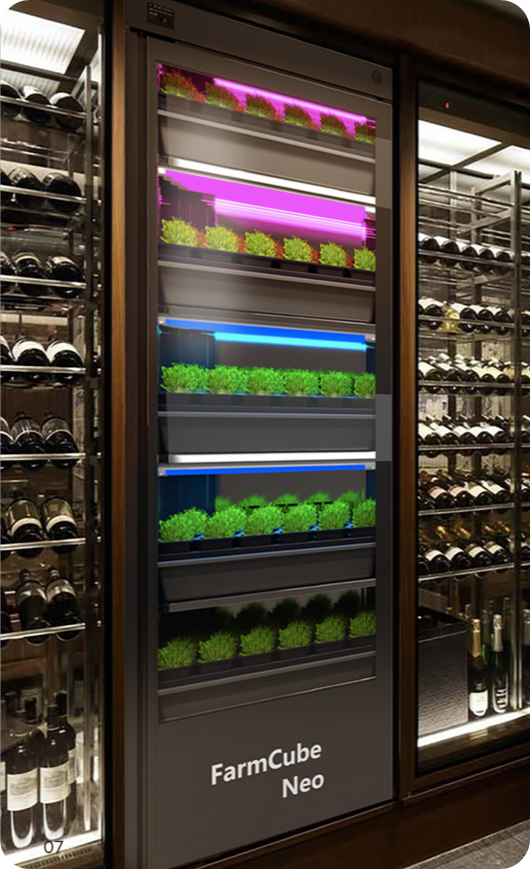 FarmCube Neo have a 2T model (2 growing trays) and a 5T model (1 Seedling + 4 growing trays). These options are designed to meet diverse application needs, including home kitchens, restaurant back-of-house operations, supermarket display areas, central kitchens, and food processing environments.